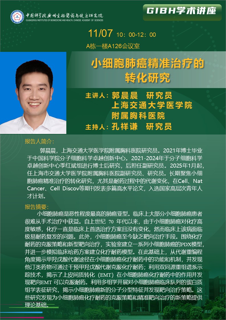 2025年11月7日學術(shù)講座:小細胞肺癌精準治療的轉(zhuǎn)化研究