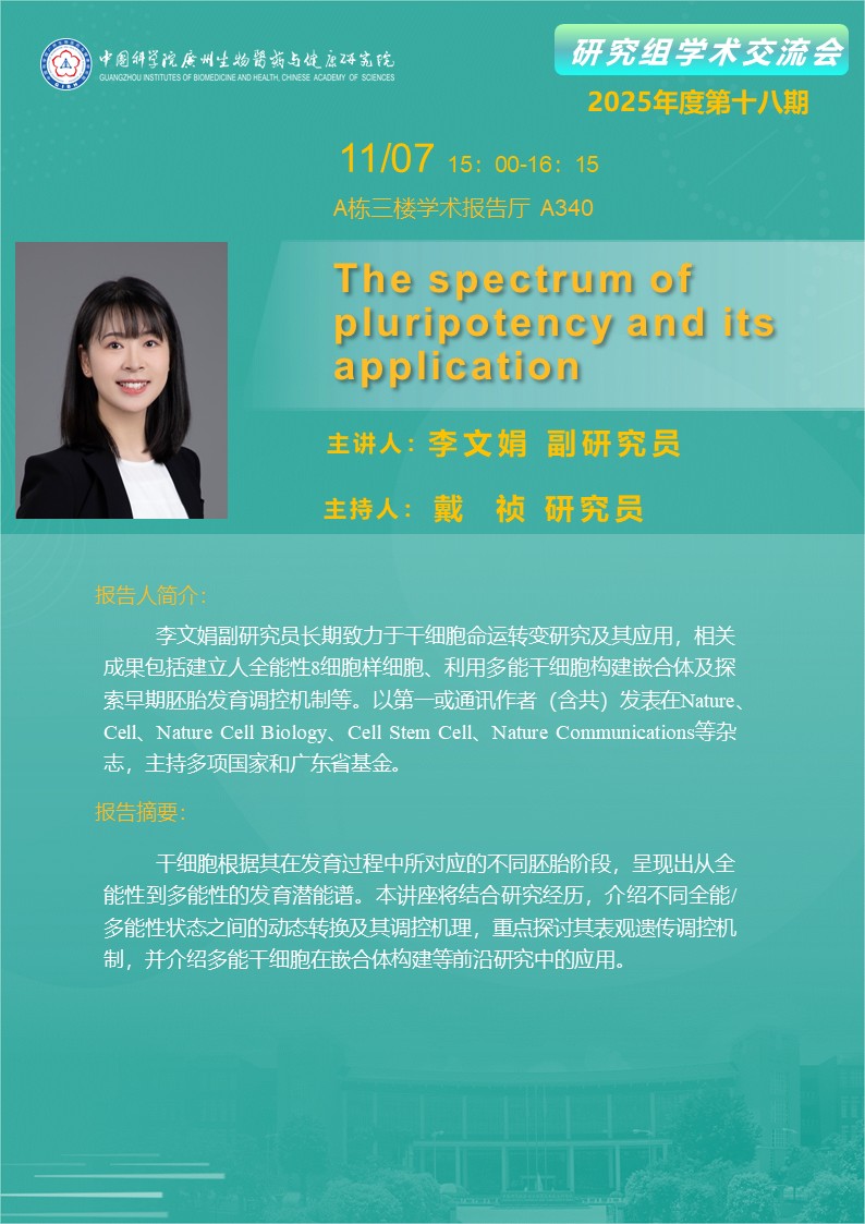 2025年11月7日研究組學(xué)術(shù)交流會(huì)(2025年度第十八期):The spectrum of pluripotency and its application
